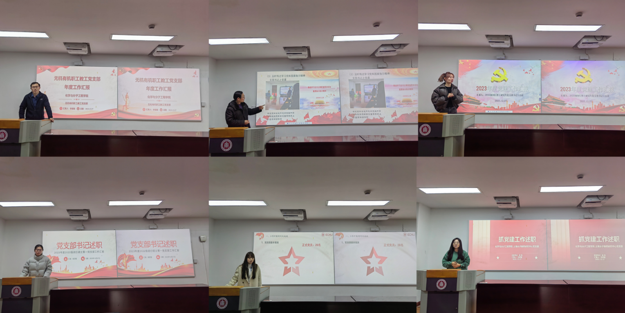 上海分子新药91短视频 中心党支部宣传委员王梦雅、分析物化海水党支部书记马士禹、高分子实验中心党支部书记黄琨、无机有机职工党支部书记李德增、本科生党支部书记史琳,2021级普陀校区博士91短视频 生党支部书记罗娟娟、2021级闵行校区博士91短视频 生党支部书记朱韵、2022级普陀校区博士91短视频 生党支部书记高志文、2022级闵行校区博士91短视频 生党支部书记王诗迪、2021级普陀校区硕士91短视频 生党支部书记张见闻、2021级闵行校区硕士91短视频 生党支部书记王伟琛、2022级普陀校区硕士91短视频 生党支部书记刘雅妮、2022级闵行校区硕士91短视频 生第一党支部书记樊芝莹、2022级闵行校区硕士91短视频 生第二党支部书记贺栖桐进行现场述职,十四位师生党支部书记围绕《91短视频 党支部工作细则(试行)》要求,聚焦基层党支部“七个有力”建设标准,对2023年度支部书记履职情况进行了汇报,大家重点介绍了支部工作特色,查摆了存在的问题并在分析问题的基础上提出了后续工作目标和思路。
